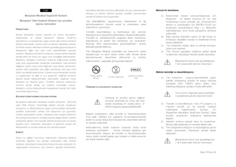 Meoplant Medikal İmplant® Sistemi sonraki ilk kullanım için de geçerlidir . 33. Kullanımdan hemen sonra,temizlenecek tüm