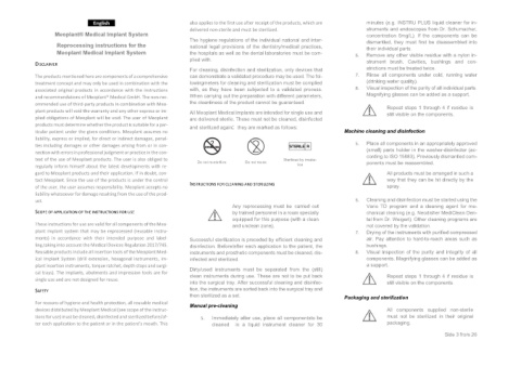Reusable products include all insertion tools of the Meoplant Med- instruments and prosthetic components must be cleaned, dis- 8. Visual inspection of the purity and integrity of all