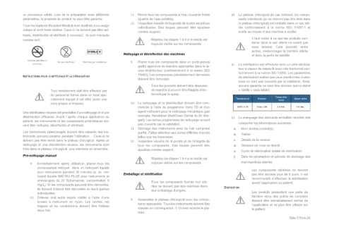 INSTRUCTIONS POUR LE NETTOYAGE ET LA STÉRILISATION 15883). Les composants précédemment démontés de stérilisation autres que ceux mentionnés ci-des-